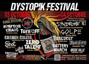 Je pense que de nos jours quasi tout le monde écoute de la musique via You Tube, bandcamp etc… mais ce que je constate en discutant avec les potes, les gens aux concerts lorsqu’on est derrière notre stand, c’est que les gens écoutent via Internet mais achètent le groupe, le disque qui leur plait une fois découvert. Beaucoup nous disent : je viens d’écouter sur bandcamp c’est excellent ! Tu aurais le disque à vendre ? ». La musique dématérialisée aide plutôt à découvrir les groupes. Comme je l’ai dit plus haut, les scènes punk et métal notamment sont vécues, animées par des passionné-es, des gens qui adorent la musique, les concerts, les groupes. Donc ils soutiennent la scène en allant aux concerts, en achetant tee-shirts, disques etc… en soutenant les groupes et labels. C’est ce qui nous sauve je pense. Les punks et métalleux aiment aussi beaucoup les pochettes de disques, les dessins/collages des artistes qui donnent une vraie identité au disque/groupe.